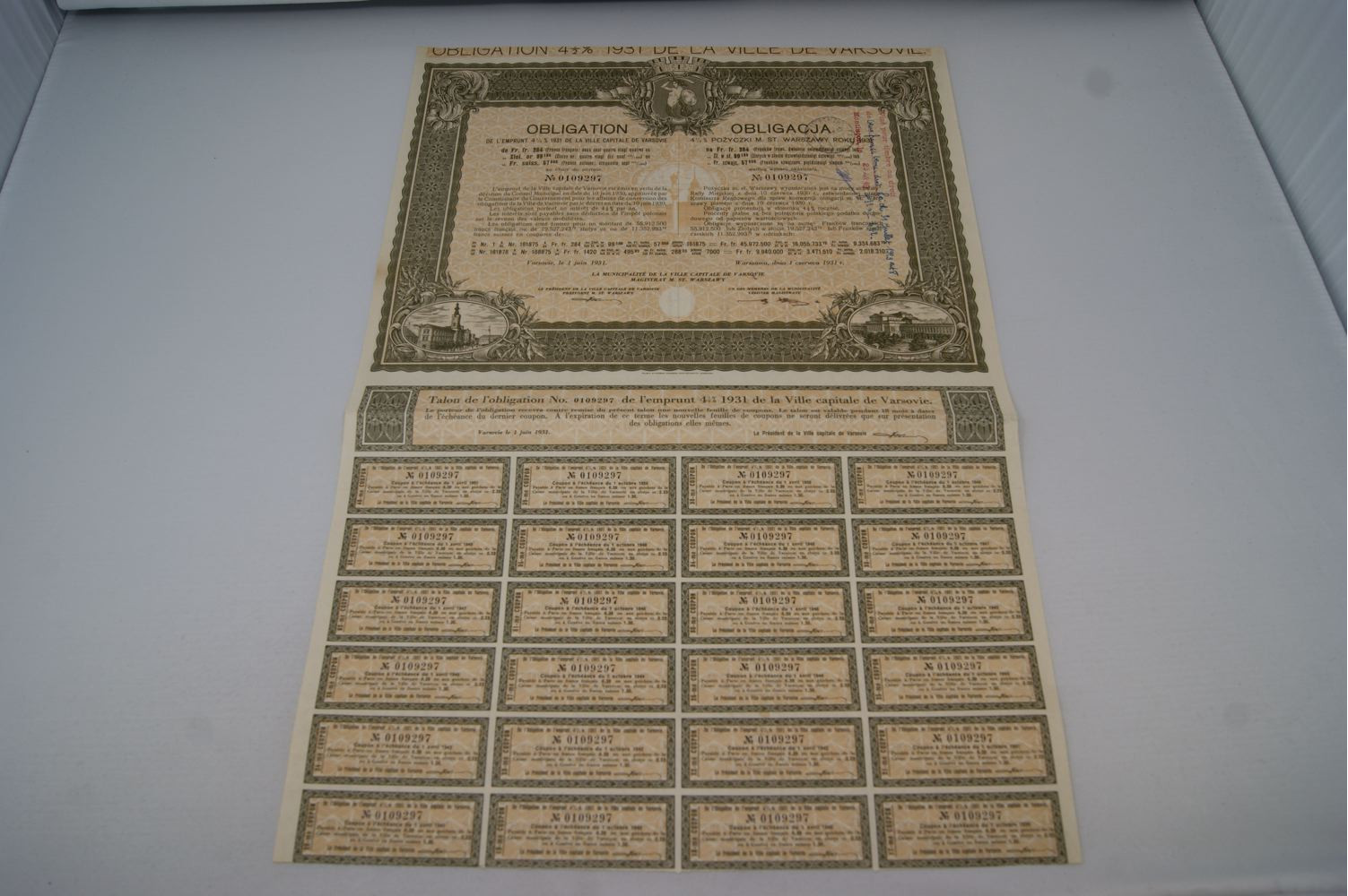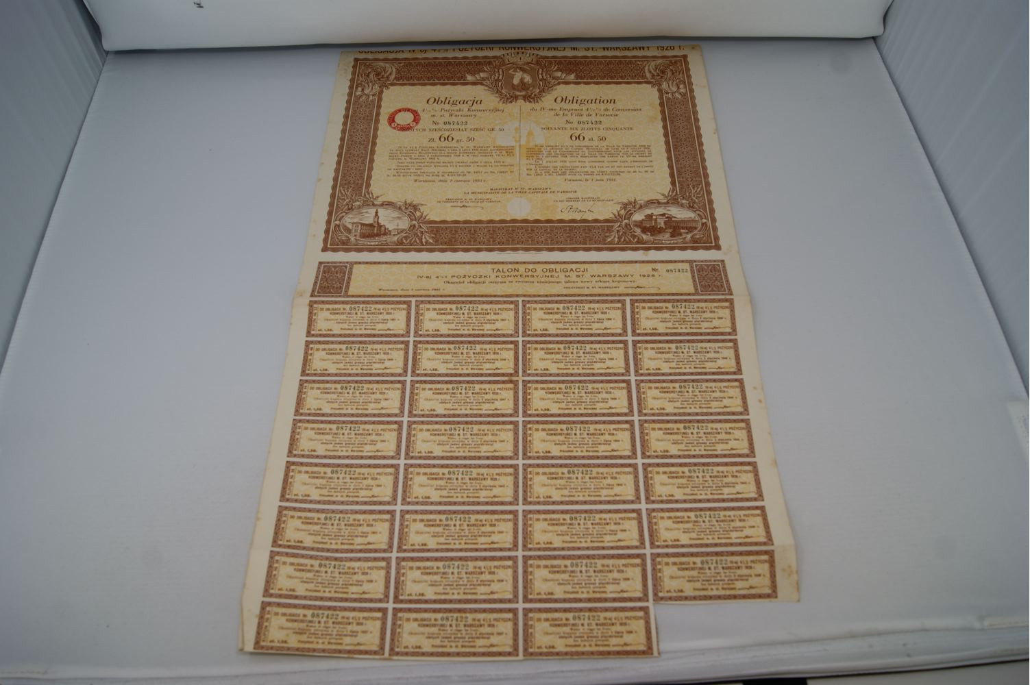 Obligation du IV-me Emprunt 4 1/2 % de Conversion de la Ville de Varsovie